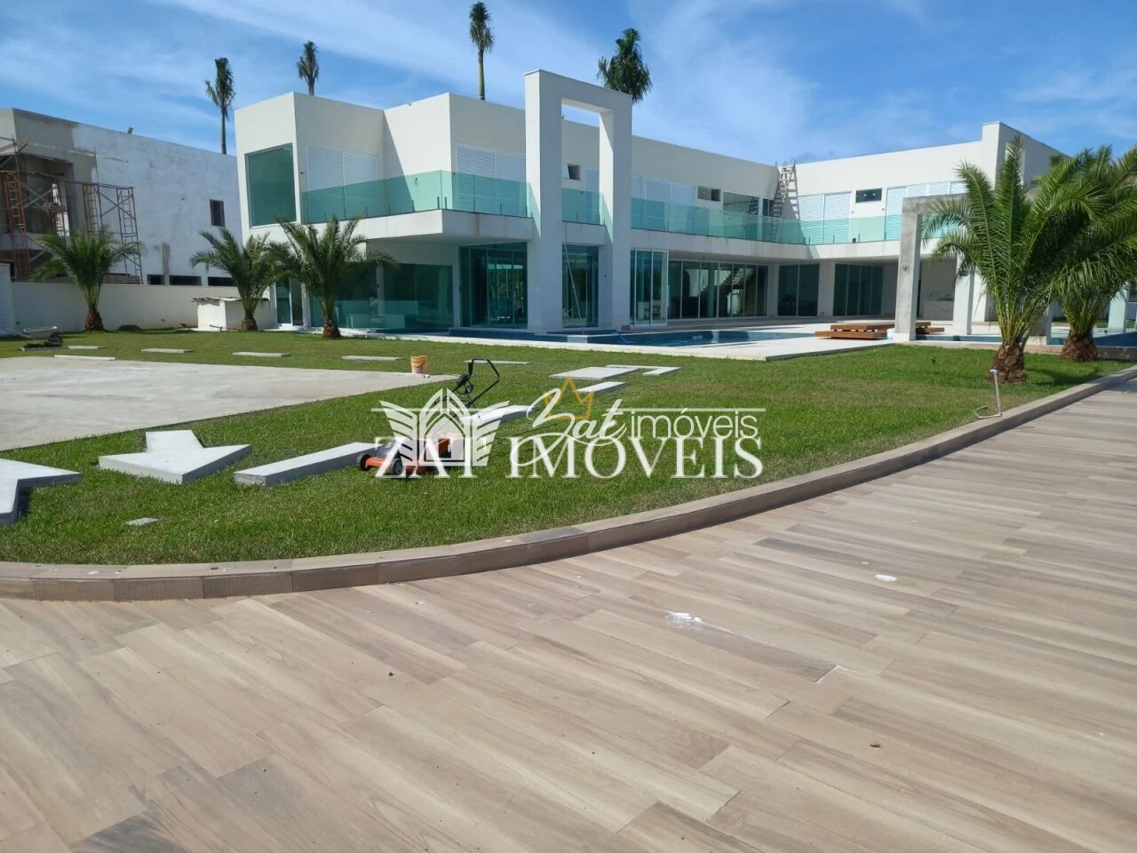 DECK: Amplo deck com revestimento e muito jardim.