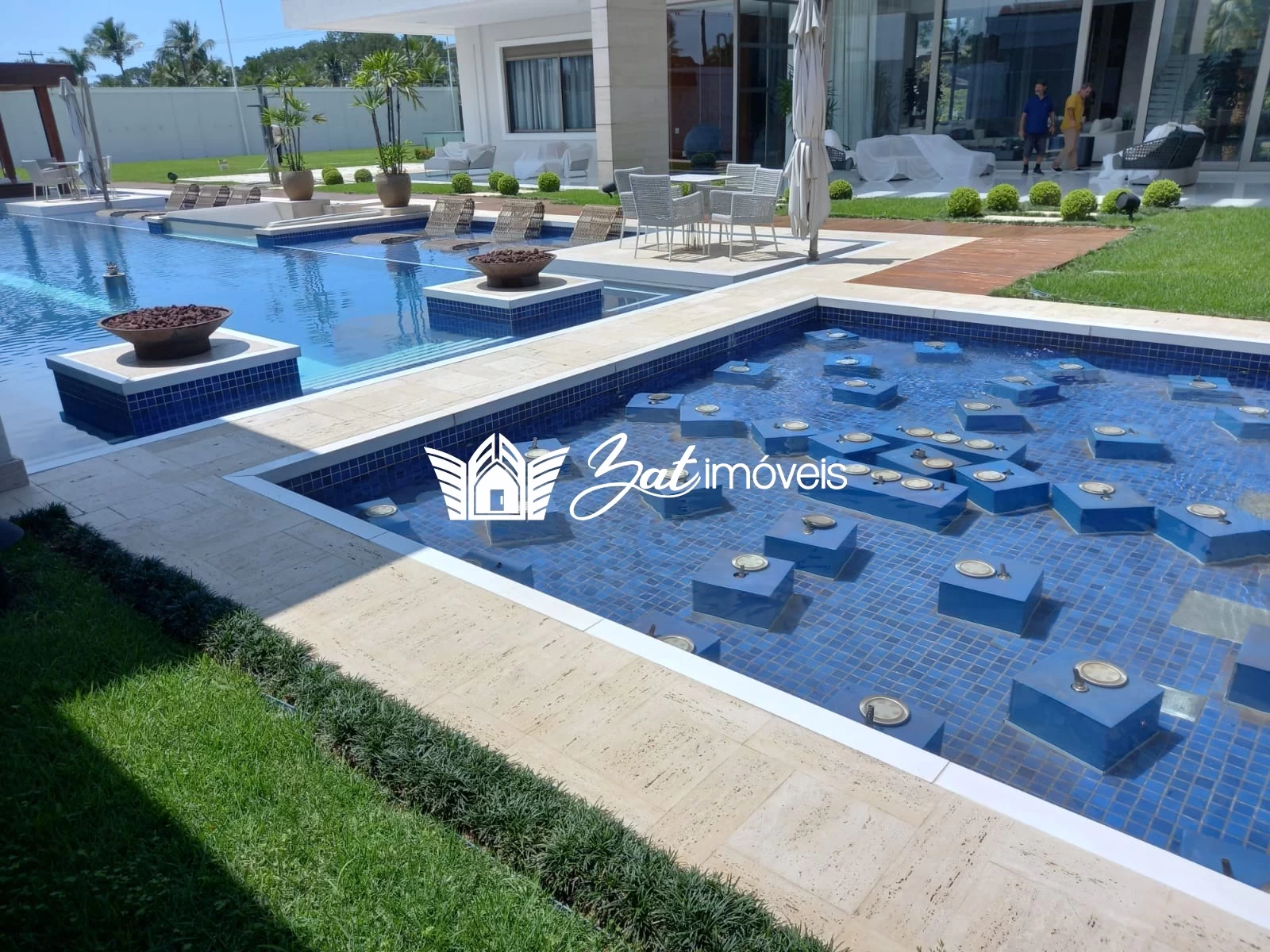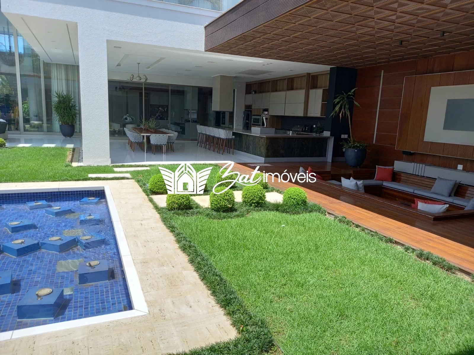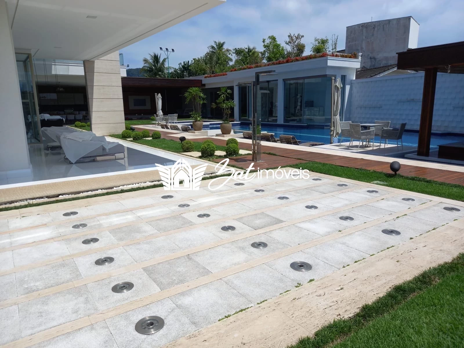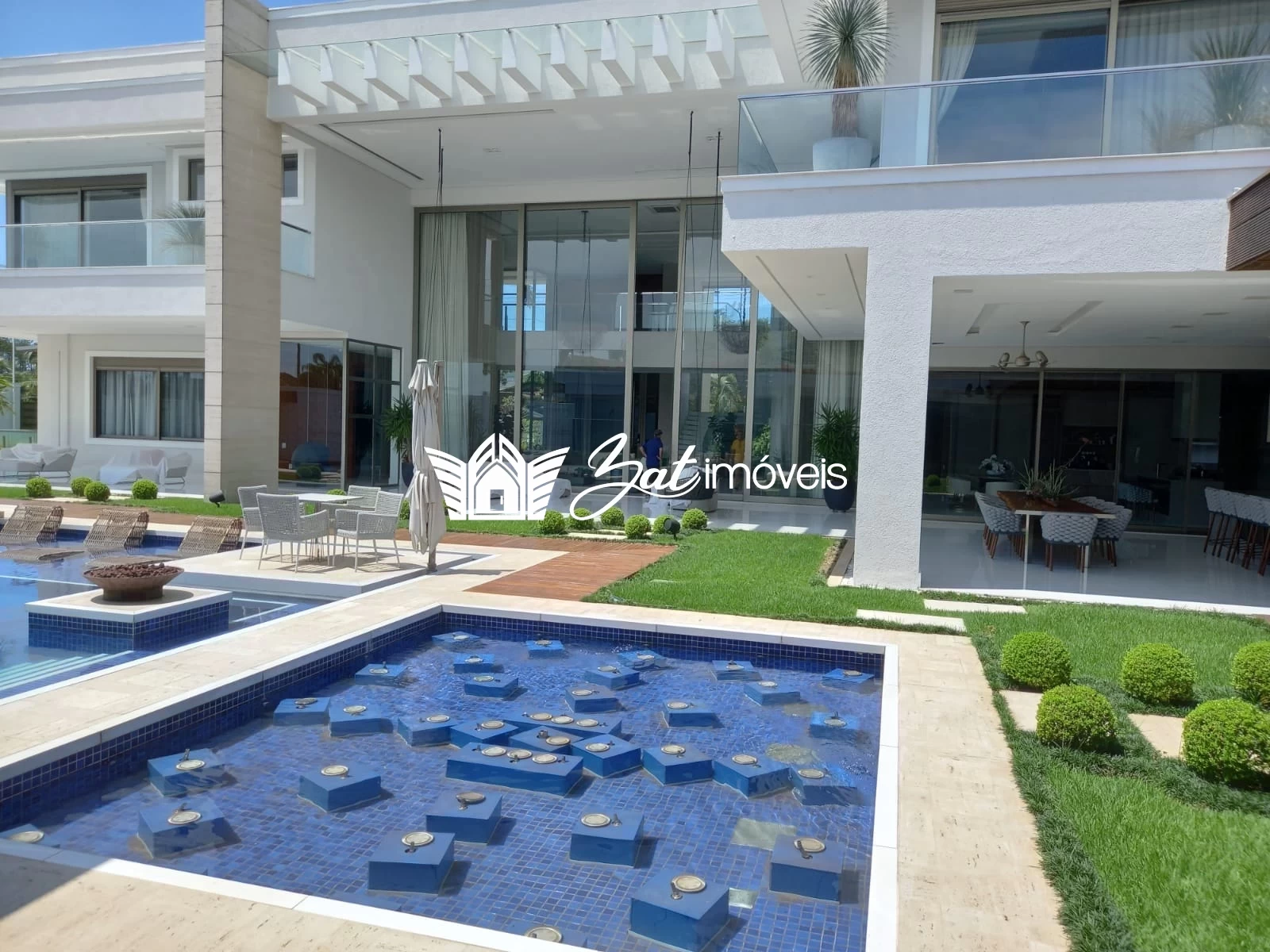 O lazer a céu aberto não tem limites nesta casa de praia. Chafarizes dispostos no jardim contam com um projeto luminotécnico especial e exibem lindos shows de águas dançantes com iluminação em LED, como nos luxuosos hotéis de Las Vegas.