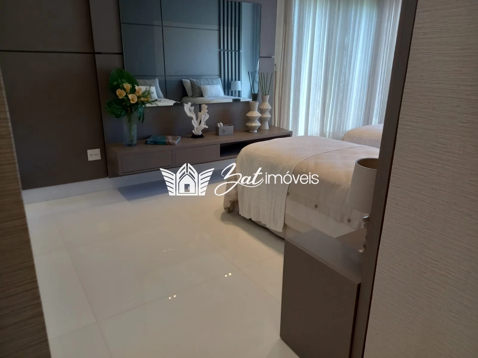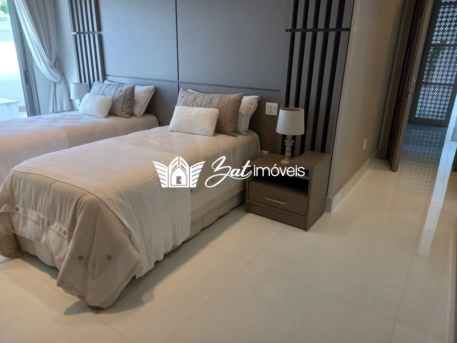 O pavimento superior reserva momentos de tranquilidade para os moradores e seus convidados em suas nove suítes totalmente decoradas com enxovais premium, distribuídas de forma a manter a privacidade dos proprietários e seus hóspedes.