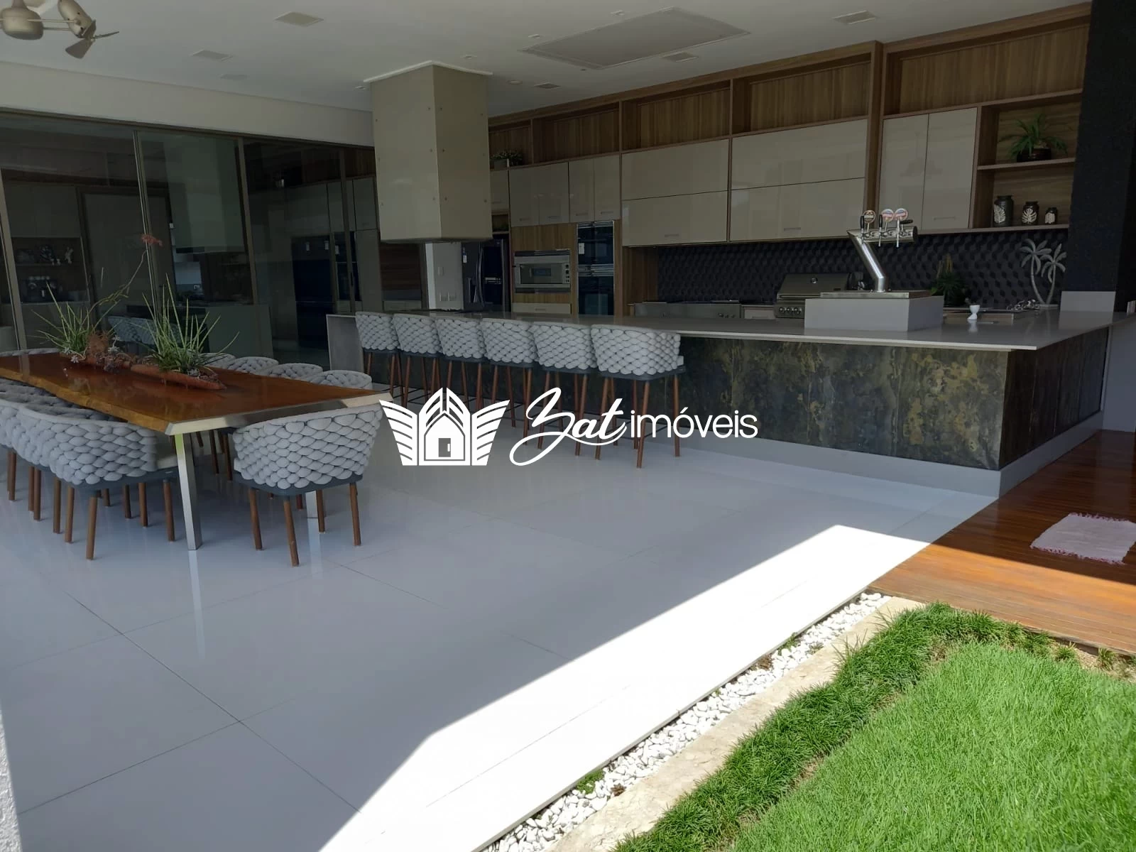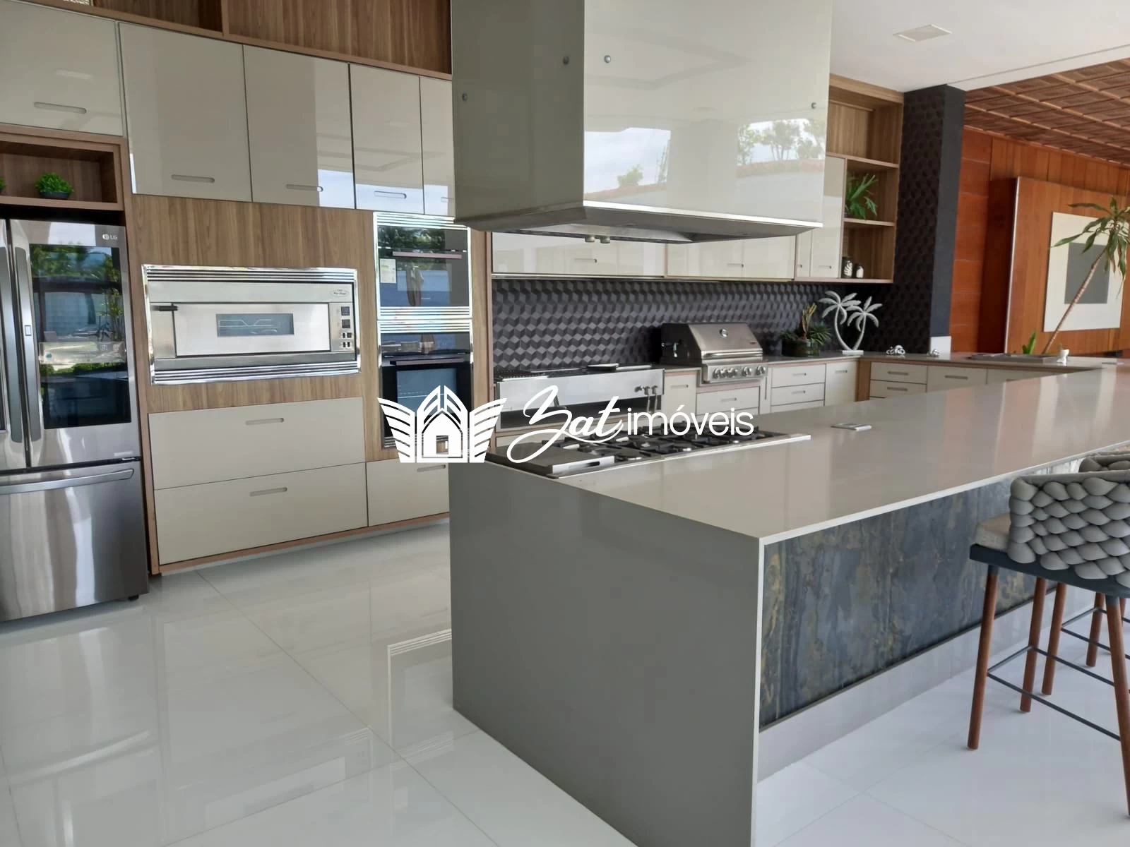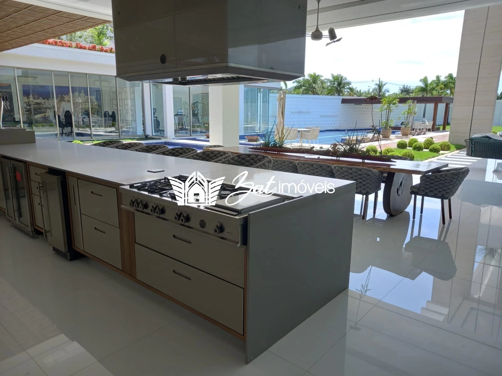 Mobiliado com todo o luxo e sofisticação, seguindo os mesmos padrões de armários, bancadas e eletrodomésticos da cozinha, o gourmet é uma amostra do bom gosto e da atenção aos detalhes com que esta propriedade foi concebida.