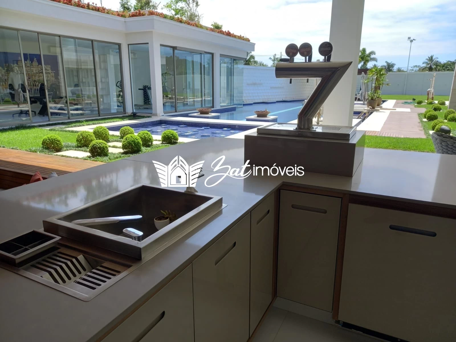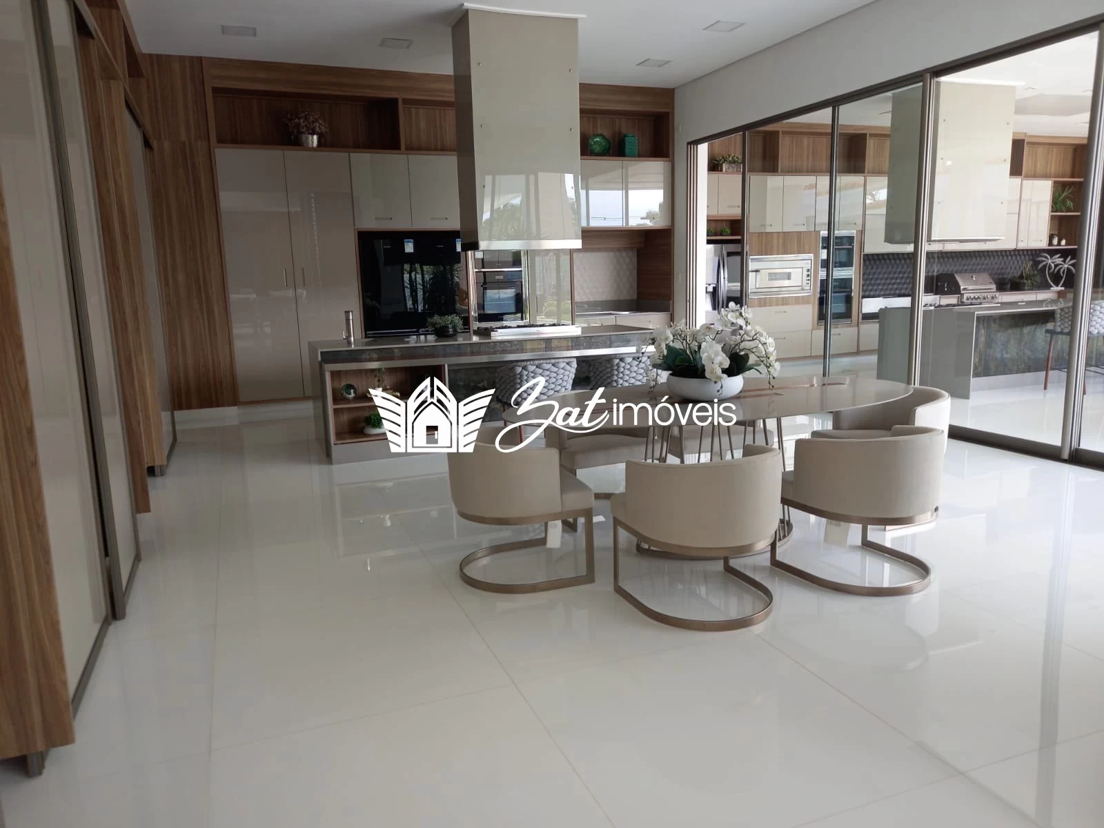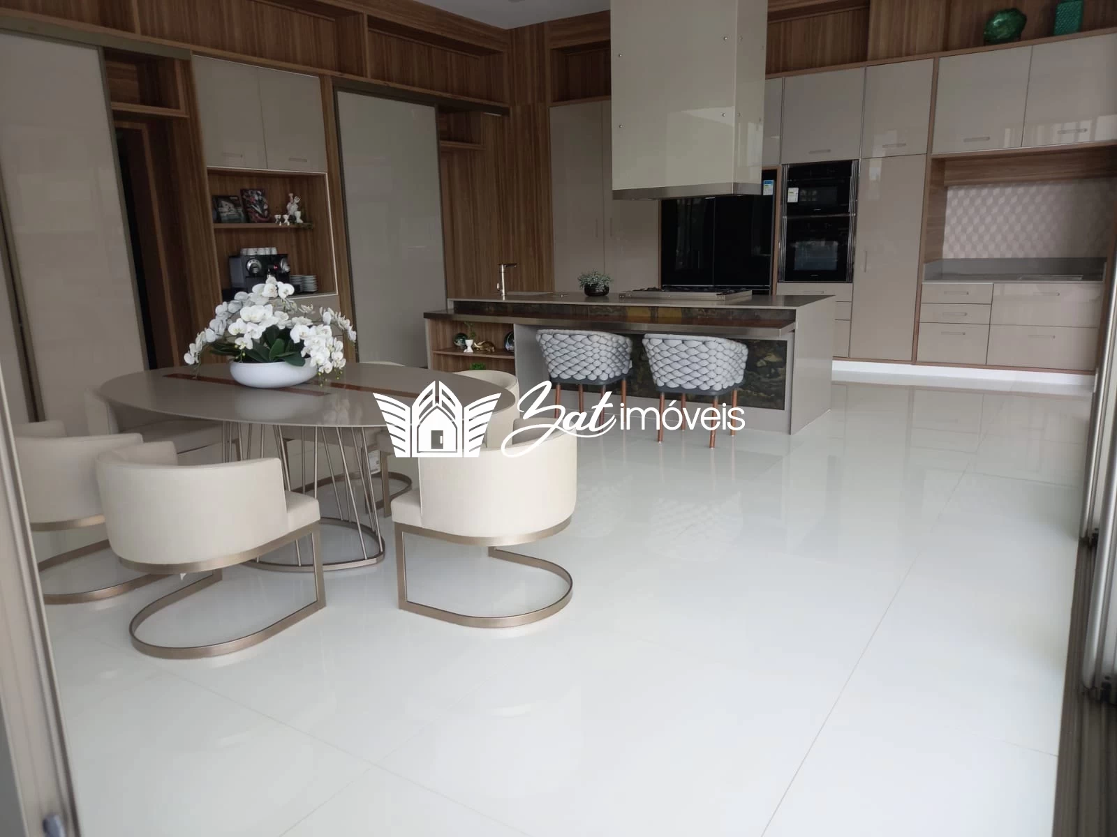 Mobiliado com todo o luxo e sofisticação, seguindo os mesmos padrões de armários, bancadas e eletrodomésticos da cozinha, o gourmet é uma amostra do bom gosto e da atenção aos detalhes com que esta propriedade foi concebida.
