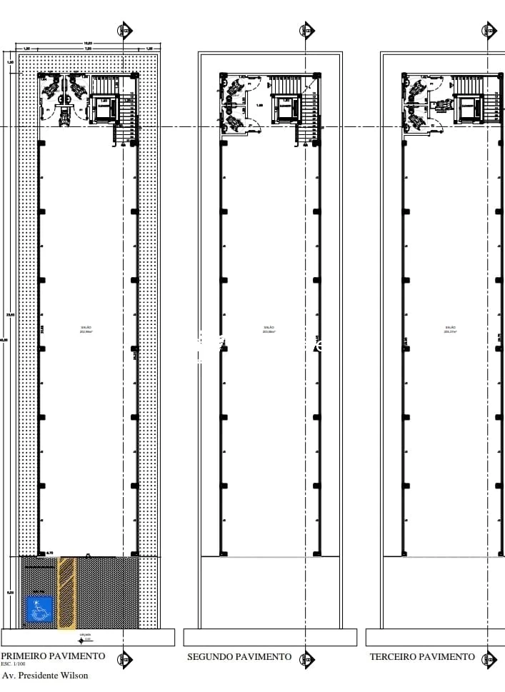 03 Salas divididas em três andares cada com 200m2.