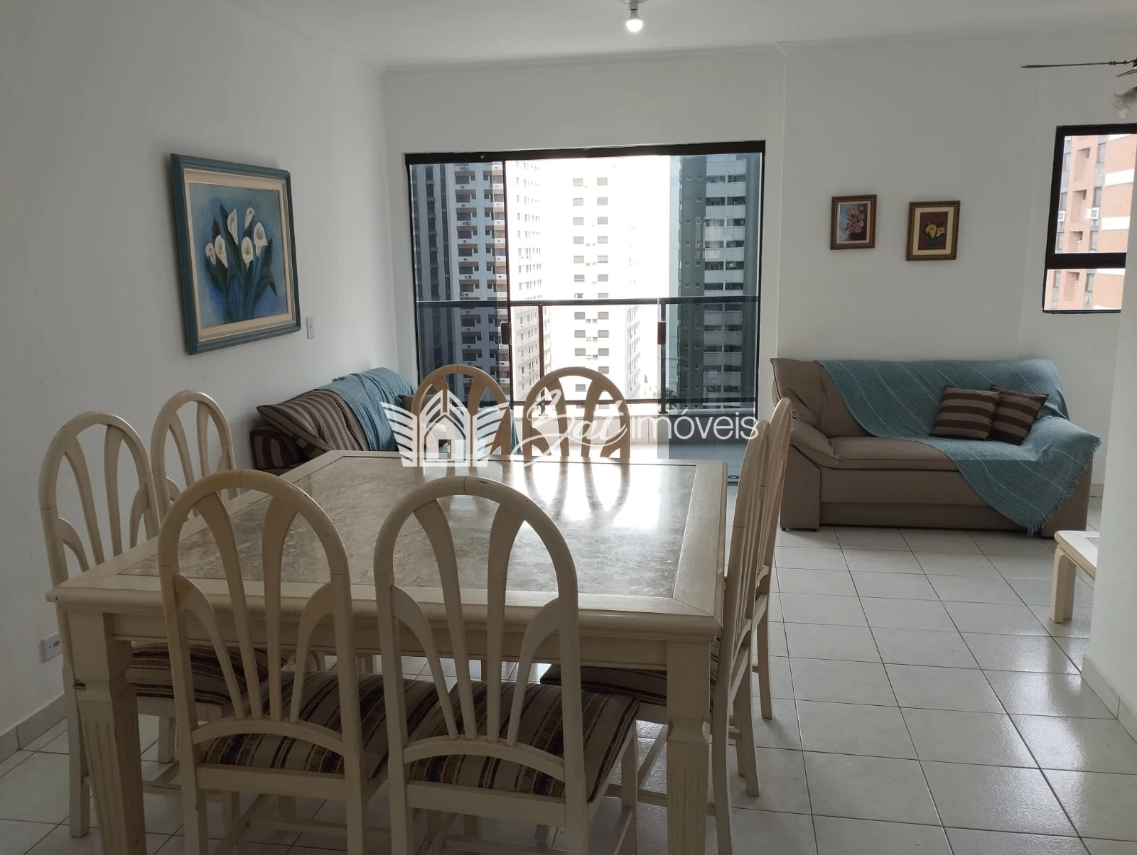 IMÓVEL: Mobiliado, armários embutidos nos ambientes, sala 02 ambientes, varanda grande com ligação para sala e quartos, vista parcial para o mar, área de serviço, piso cerâmico, interfone.