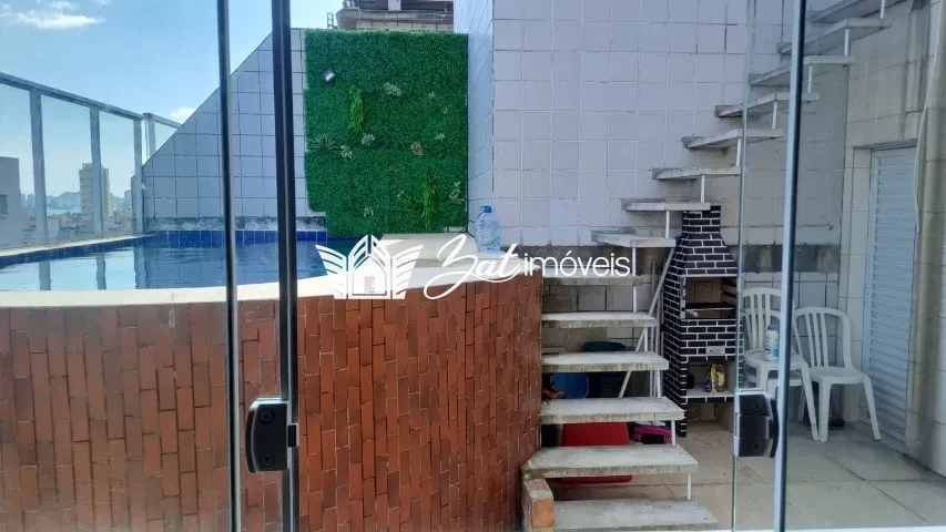 COBERTURA DUPLEX Enseada: Terraço com piscina, ar condicionado, armários planejados.
